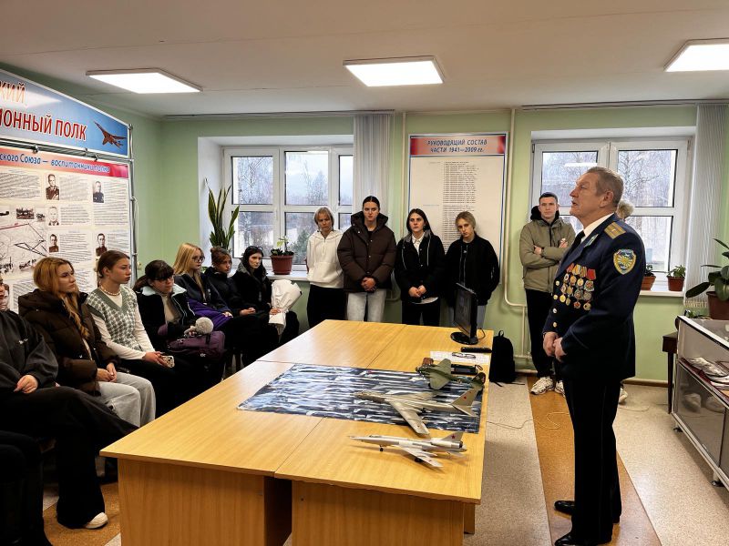 13 ноября в рамках информационного часа группа ФКСТ-11 посетила экспозиционный уголок 203-го Гвардейского Орловского полка Дальней авиации. Гвардии майор Горшков Геннадий Григорьевич познакомил студентов с историей создания музея, историческими документами, фотоматериалами и экспонатами.