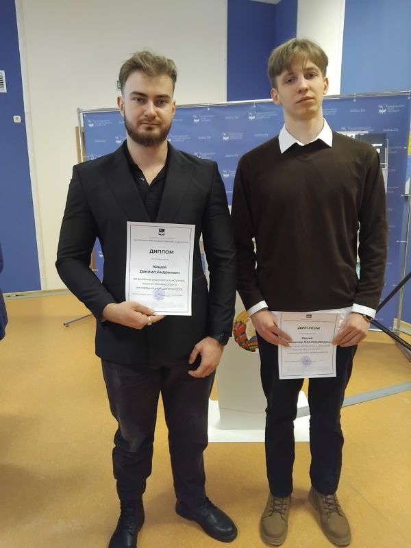 Кишея Даниил и Липай Александр, студенты группы СПД-41, были награждены дипломами за высокие результаты в научной, научно-технической и инновационной деятельности.