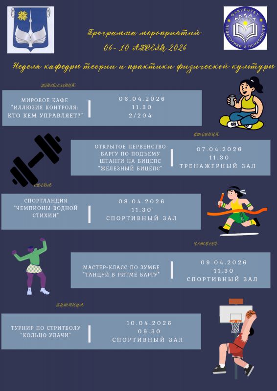 Программа мероприятий на неделе кафедры теории и практики физической культуры