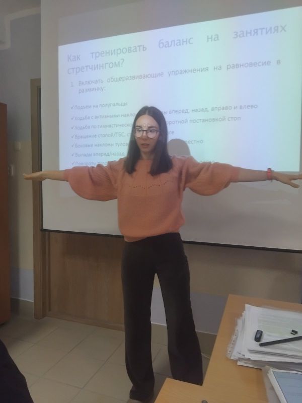 С целью обмена опытом, интеграции научных знаний в практику и повышения квалификации будущих специалистов физической культуры и спорта, 19 ноября 2025 года старшим преподавателем, доцентом Филимоновой Н.И. для слушателей специальности «Оздоровительная физическая культура» организован круглый стол на тему: «Современные подходы к развитию физических качеств: наука и практика».